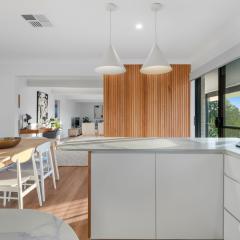 Set on a generous block in a quiet no-through street, the home showcases light-filled interiors, high-end finishes and a seamless open-plan design that connects the living, dining and kitchen areas to the spectacular outdoor outlook.